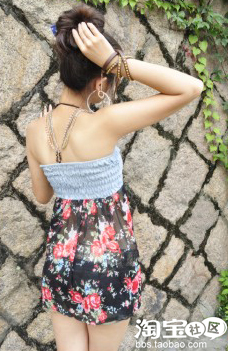 NO.3 抹胸碎花雪纺裙+透明手镯+人字拖