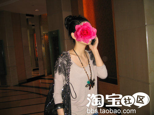 比如配上这条比较好看和特别一点的大串珠雕彩色花朵短款项链,
