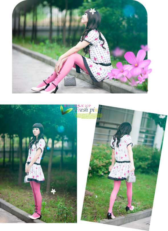 粉色系的娇美可爱,配以清爽的白色长裙,让人眼中飘逸着诱人的淡淡芳香。