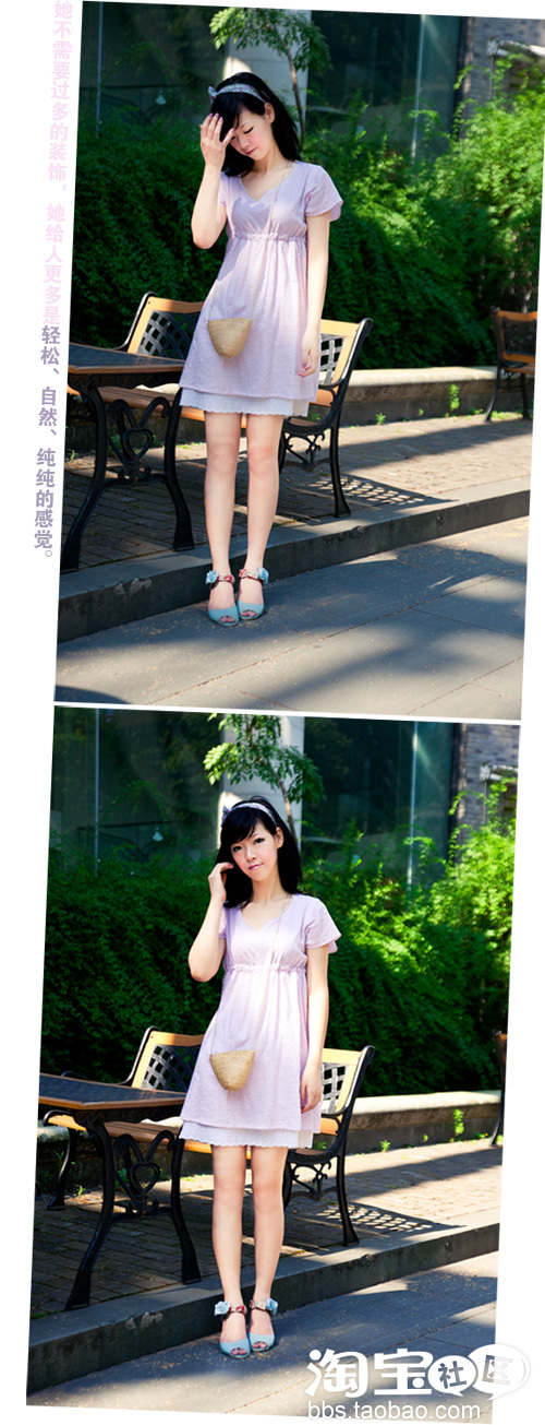 v领的设计可以让女孩们小小的秀出性感,甜美却又不失稳重。:)