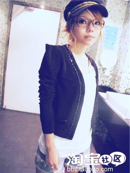 辣椒礼帽+韩国代购不规则毛边金粉外套