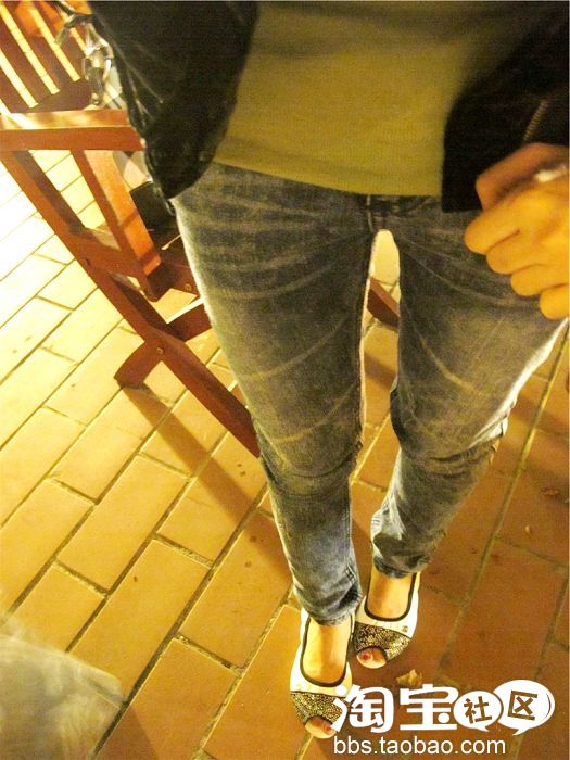 上面配的是这个紧身显瘦的牛仔裤,哈哈