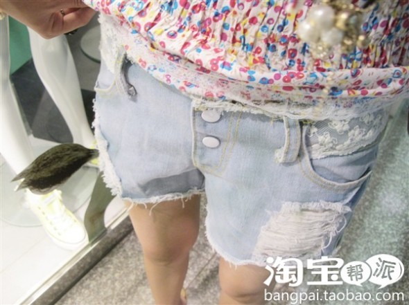 下面来讨论下,那个那个,超级super大爱的蕾丝破洞双排扣牛仔裤吧