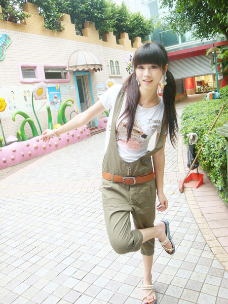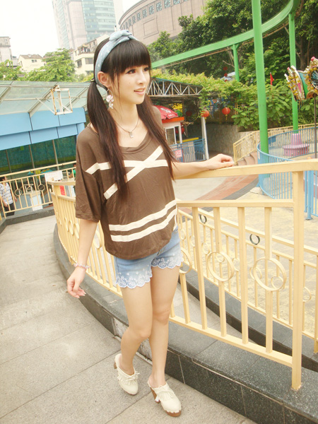 款军绿上衣,配上牛仔短裤,清爽迷人,牛仔上的刺绣花边,增添了裤子特别感。令