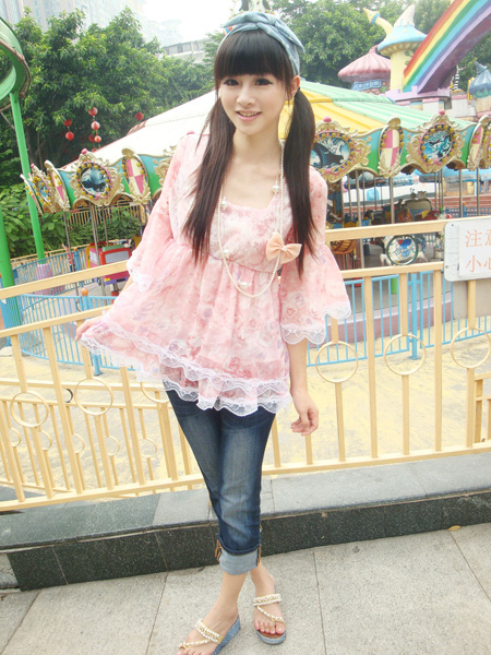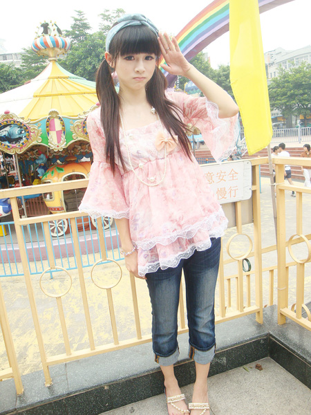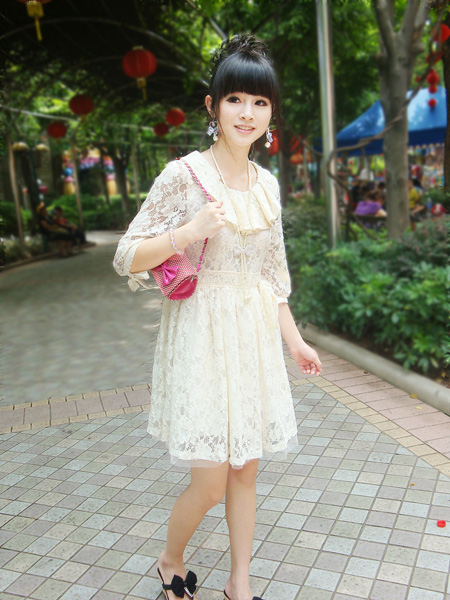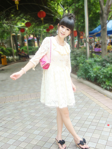 可爱的娃娃装,粉粉的颜色适合恋爱的季节哦,蕾丝花边更增添了浪漫的气息,搭配上