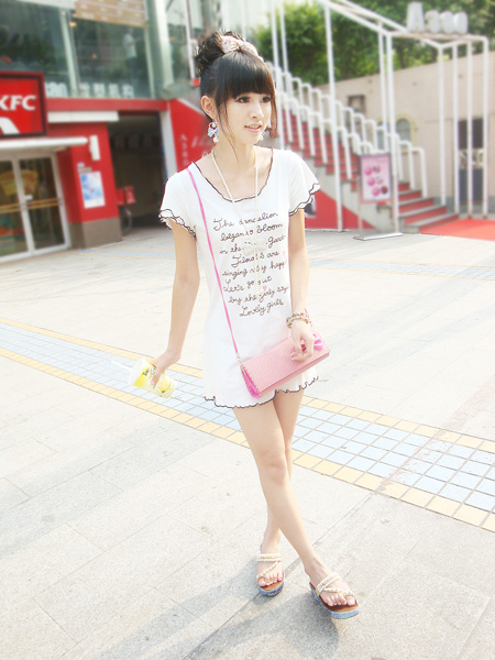 或许不是所有女生都喜欢穿裙子约会,有时候不需要太复杂的搭配,一款宽松的短