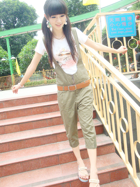 (六)军绿休闲背带裤+假面舞会T
