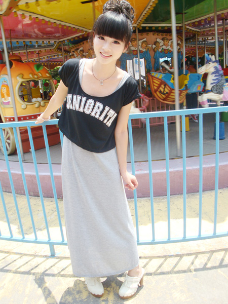 (一)英文字母短T+纯色长裙