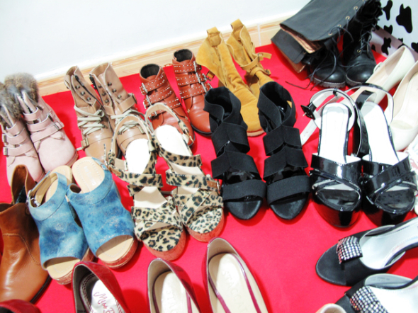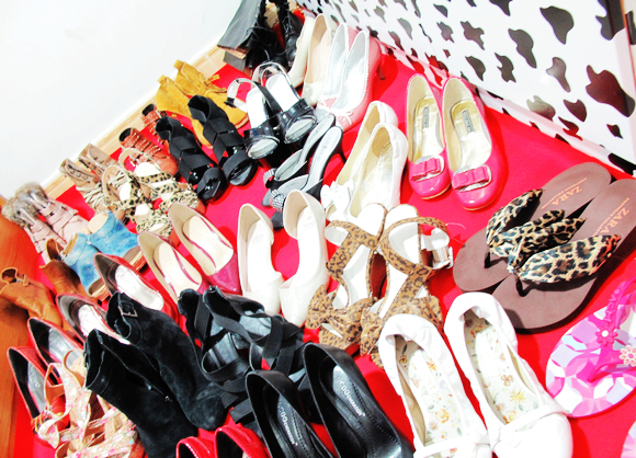 我有一个房间是专门放衣服鞋子的,鞋子被我摆的满地都是。