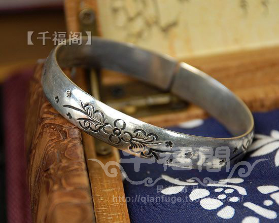苗银:现在说的苗银都并非纯银,其它主要成分是铜,含银量不高.其主要特点是苗族地区手工打制作,图案精美,富有寓意。苗族最早的银饰艺术萌芽于巫术图腾活动之中。苗家笃信银器能驱邪逐崇、防阴气戕害。古时苗民戴上银脖圈,据说能战胜作恶的“老变婆”,确保合家平安。闻名遐迩的黔东南苗族大银角,其造型源自祖先蚩尤“头有角”的形象,旨在祭祀祖先、获得其保佑。他们在日常生活中对银饰爱惜备至,奉若神明。他们创造了各式各样图案、款式的银饰造型,既散发出浓郁的乡土民间气息,又表现出深厚的民俗文化内涵,同时也显示了一个大民族的辉煌与气势。