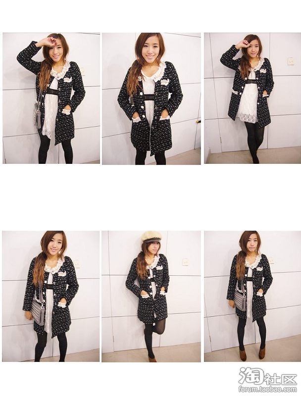 很喜欢的一款大衣 粗花呢子的材质很舒服有保暖 领口和口袋的花边增添了一份小女生的可爱