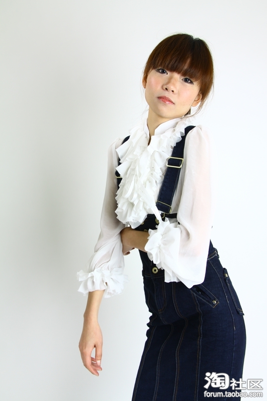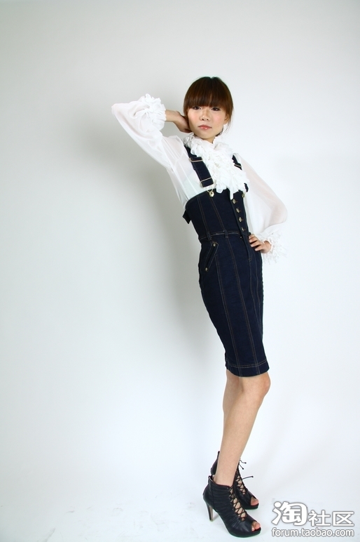 幸福找了个高腰牛仔连衣裙陪OL气质木耳边衬衫~