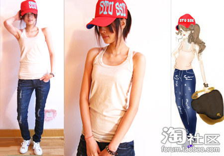 (搭配要点:穿上运动背心,带上棒球帽 磨白牛仔裤