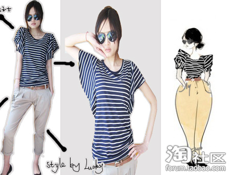 (搭配要点:条纹T恤总是容易和大海联系在一起,因为那样一种海军情结