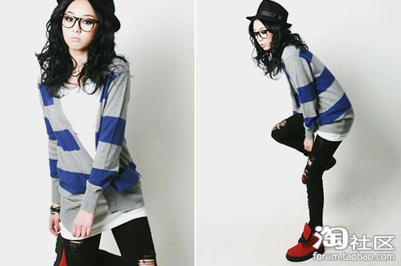 此套服装,在韩国的街头是最常见的,也是很普通的着装。休闲中张扬着自己的个性。