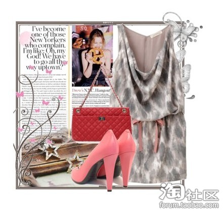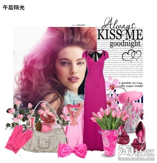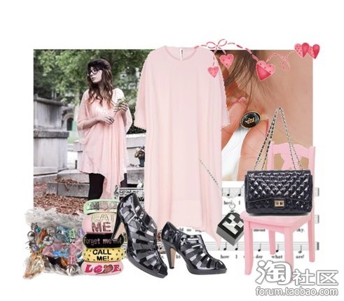粉色和黑色的对比,蕾丝效果的印花,今天都会很流行