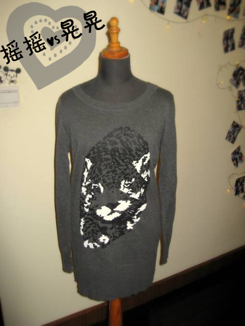 白写了一个小时的报告啊。突然页面就跳掉了。实在太让人心痛了。第一次参加试穿活动就被选中了哦。摇摇还是很开心的。所以正在努力再写一份报告出来。真是辛苦啊。平时工作没时间拍照。到了周末为了淘宝而工作。拍照拍得都能突然带妆睡着呢。回到正题。这一件衣服是保守款。不会出错。深灰色很显瘦也很洋气。大图案和长款依然是2010年的时尚元素。摇摇很推荐哈。