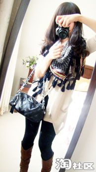 大爱的开衫+短靴+流苏方巾 是重点哦