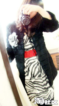 优雅黑色皮草+斑马纹雪纺 优雅范