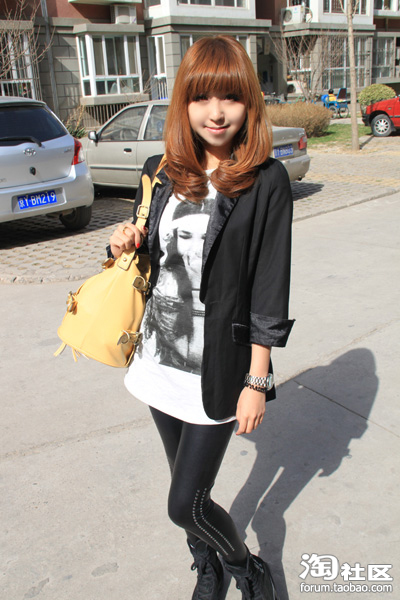 7.ZARA原单tee+黑色七分袖西装+铆钉皮裤=混搭 欧美范 随意又常用 不会显得很奇怪