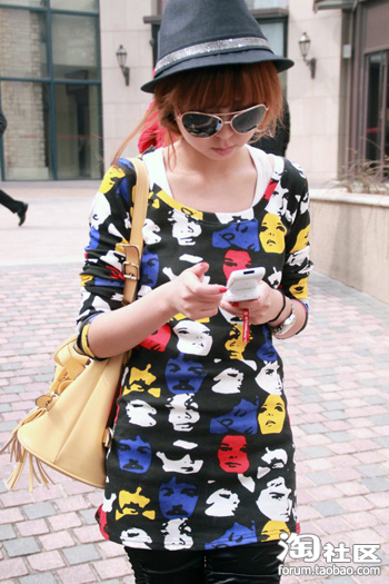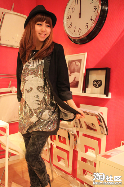 9.人头tee+H&M原单打底裤+礼帽=个性随意的装束 很适合和女朋友们购物穿