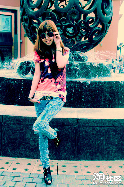 24.单袖亮片tee+烧毁牛仔裤=简单大方的风格 好搭 不挑人