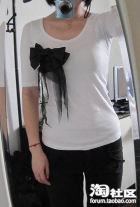 (韩版大蝴蝶结别针、中袖打底T衫)