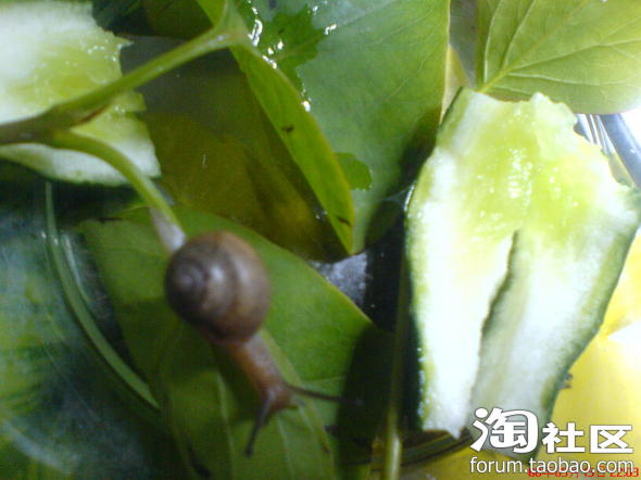 这张我好喜欢,这是我养的蜗牛啊,哈哈,亲们看出来了吗,它很喜欢吃黄瓜的