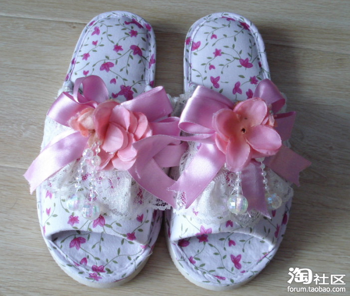 话说这拖鞋没舍得穿,因为它太漂亮了,再一点它也太不经脏了还不能弄湿,留着欣赏好了