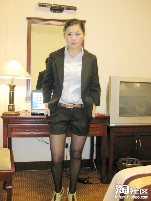 搭配着黑色的西装OL短裤