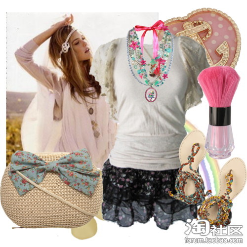 很适合春天踏青的一套装扮,碎花的彩色系渲染着春天的多彩缤纷,粉色的细节勾勒着春日的美好!