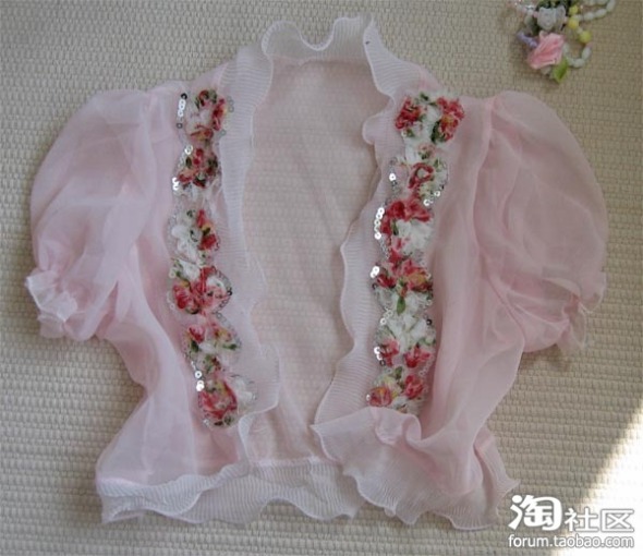 搭配小吊带,选什么~~~自然是粉粉滴小披肩,加个立体的手工花朵,浪漫你出炉喽~~