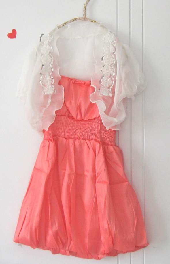 柔和的蕾丝条,下摆纱纱的蓬裙,腰间的仿丝绸蝴蝶结。