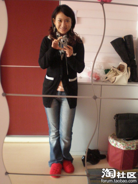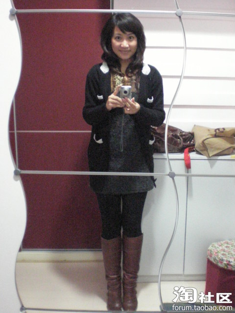 外面搭上一个小上衣,或者长款大衣都不错,这件也是刚到手的,毛外套,很厚实,超喜欢上面的珍珠~~~价格也不贵,100多!着急拍照,下面的裤子都没脱~~~
