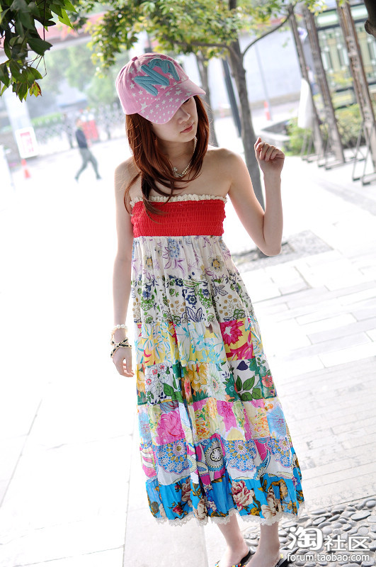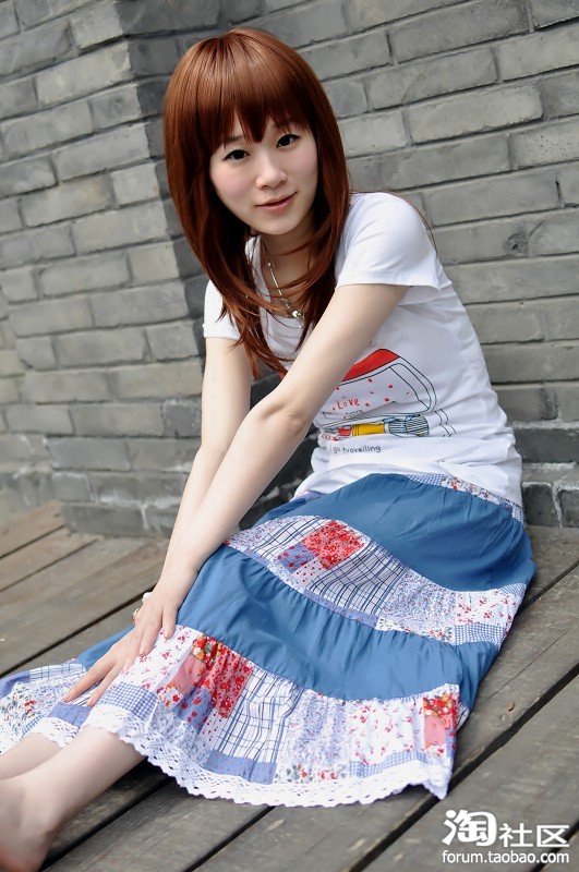 字母涂鸦白T+拼花布长懒裙,让人想起安妮宝贝笔下的棉布裙子,