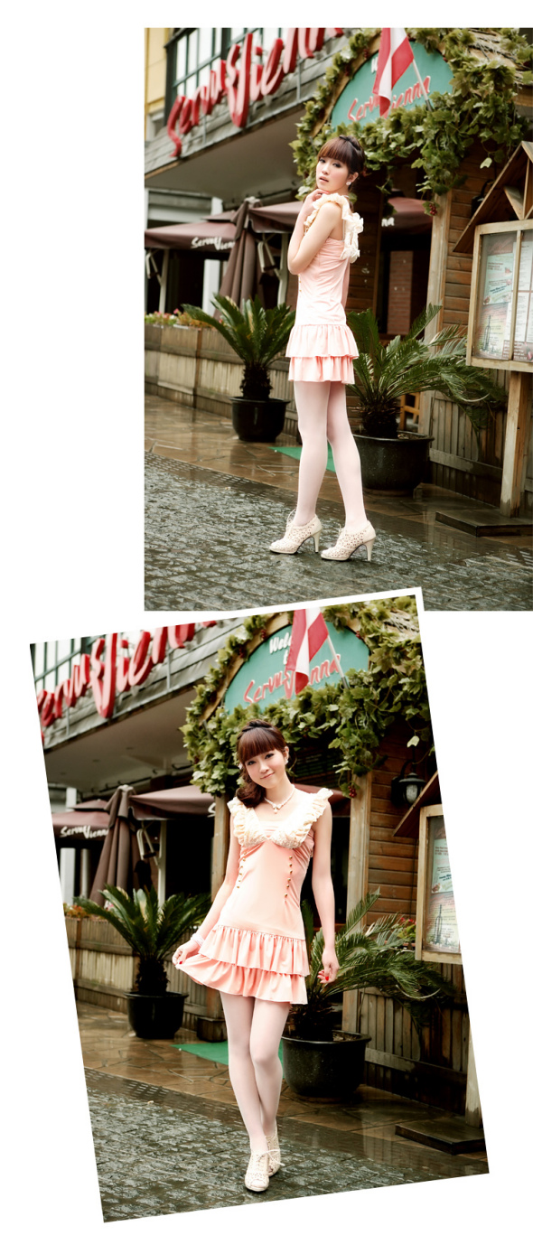 胸前的珍珠装饰处理,腰部的松紧感觉