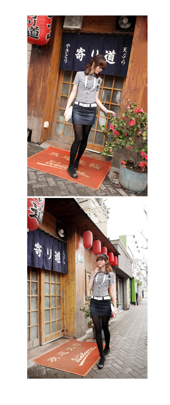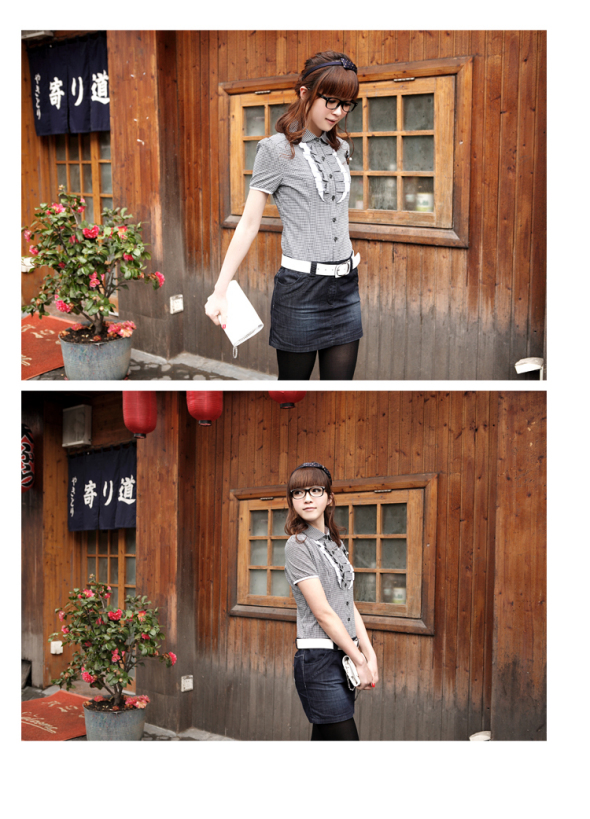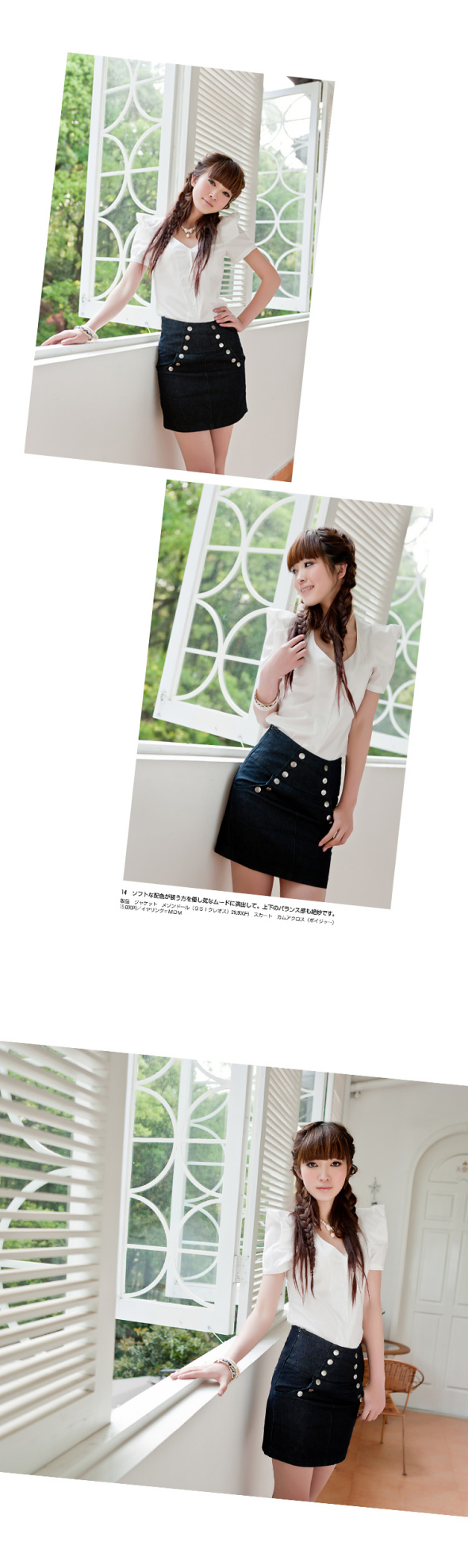 一步裙,搭配白色的衬衣~水洗的牛仔布,很有复古范儿,哇咔咔