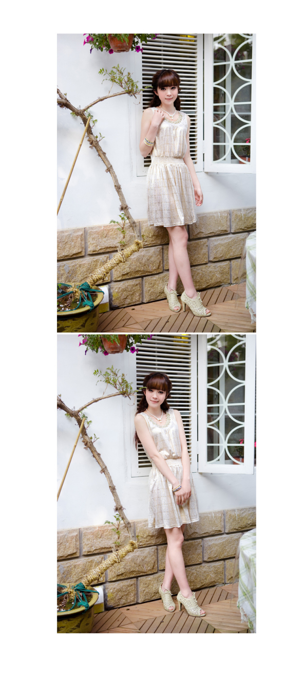 柔软轻薄烫金点面料、纯净的色彩、时尚的剪裁设计