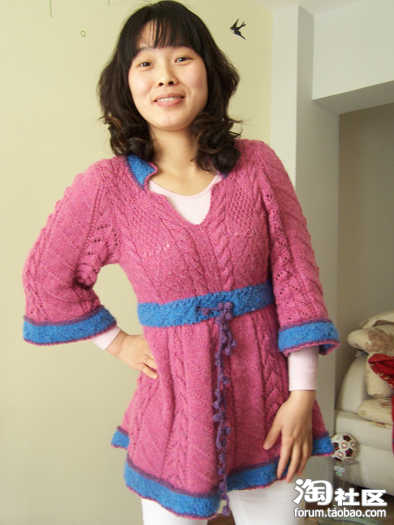 前段时间看到杂志上的这个款很喜欢,于是就用店里的线配着织了件