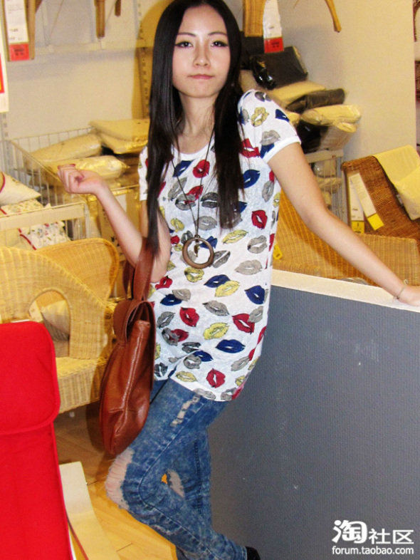 =================NO.5 缤纷唇印KISS超显瘦修身圆领T恤===============
