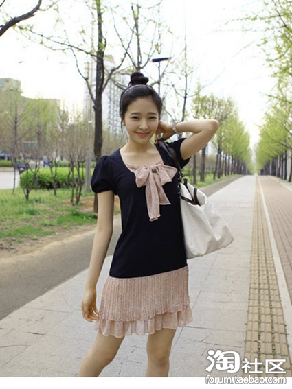 简约的小蝴蝶结花色搭配典雅的粉色雪纺