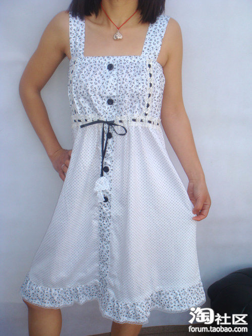 白色层层蛋糕边加上黑色百褶裙摆,很甜美的裙子。