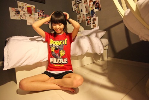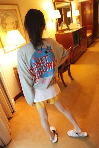 6.背后可爱图的T,搭配鹅黄短裤,小个性!