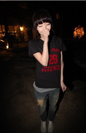 9.百搭的黑色字母T,配破洞牛仔裤,很个性很街头!