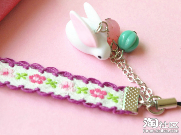 来一个非常萌的手机链,哈,我的最爱,我也是兔子控,自己是属兔的,所以叫胖小兔拉