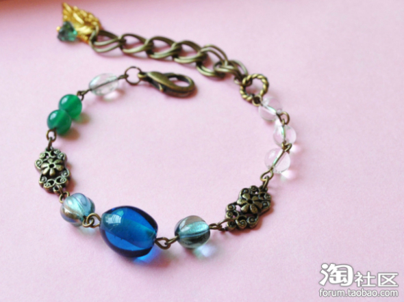 我钟爱的复古手链来拉,美吗?我用琉璃珠做的,手工制作比较烦琐的,要有良好的耐心来