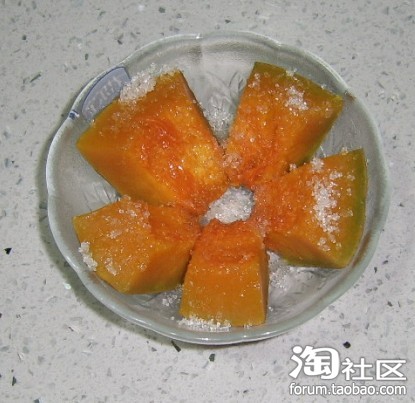 做法:南瓜洗净,放蒸锅里蒸十几分钟,然后切成小块,撒上白糖即可。