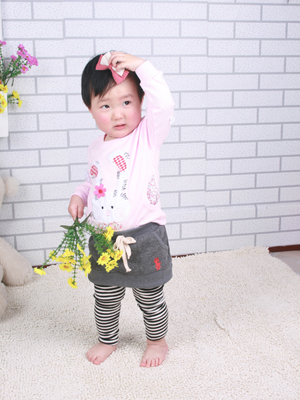 【粉色兔子T恤+韩版裙裤】