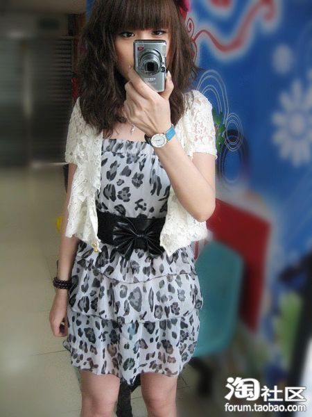 再配上一条蝴蝶结腰带,可以显得腰细细的!!