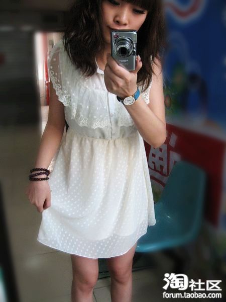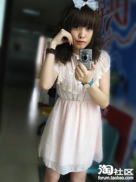 雪纺的布料上还有暗暗的圆圈去点缀裙裙!!